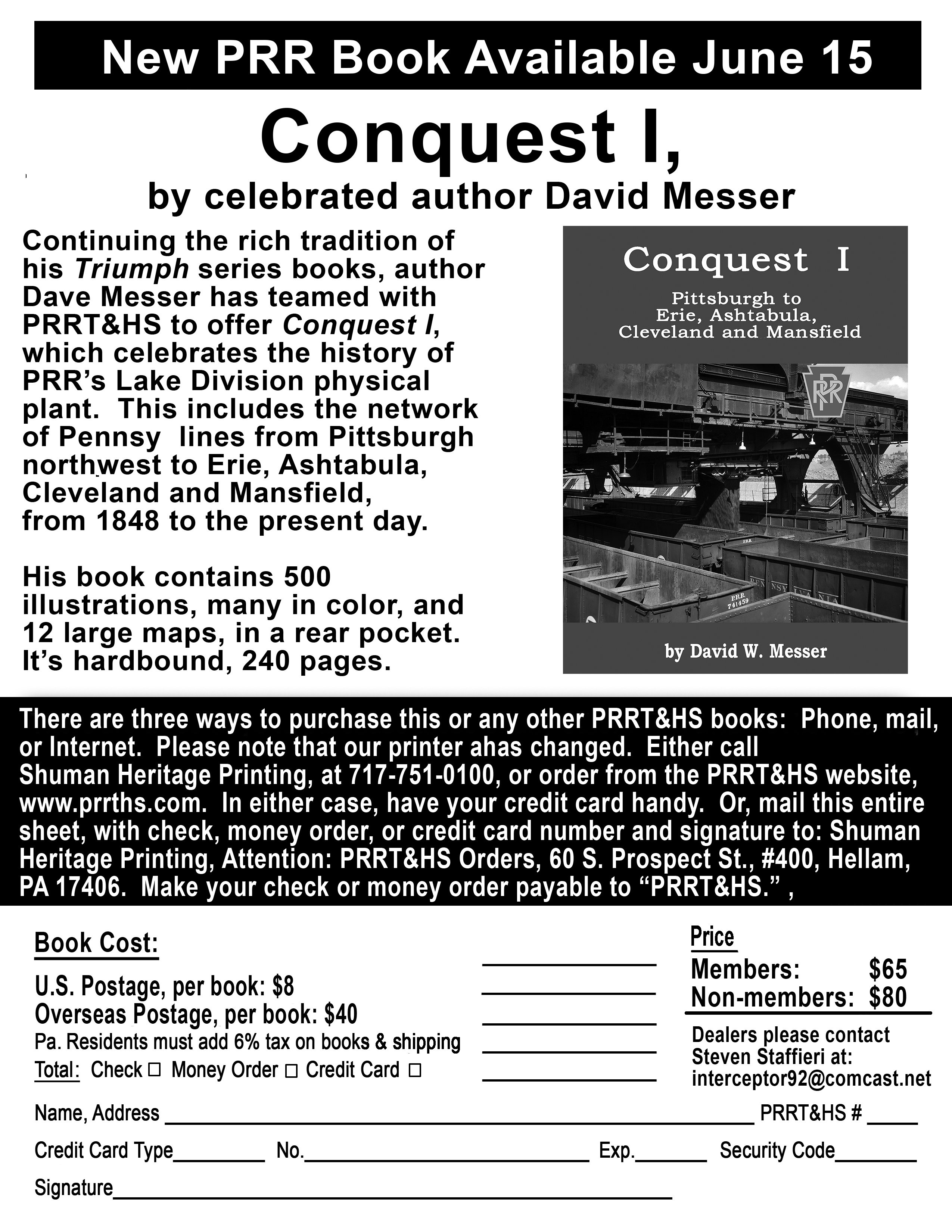 In PRRT&HS book news, the TTX books are back in stock and backorders are currently being shipped. The new David Messer book, Conquest 1, Pittsburgh to Erie, Ashtabula and Mansfield is also available. See the attached handout.